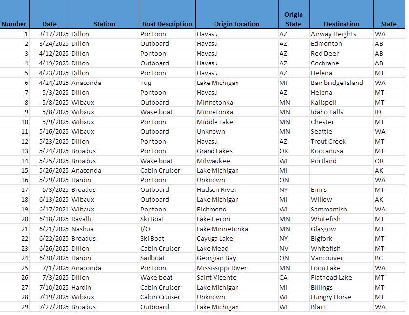 2024 was another busy year addressing AIS issues across Montana and throughout the region. The 2024 end-of-year reports are attached and will be available on the website soon. Thank you to all the partners around the state who dedicate their time and effort to AIS prevention, early detection and outreach. We are looking forward to a great 2025. A quick summary of 2024 info below: